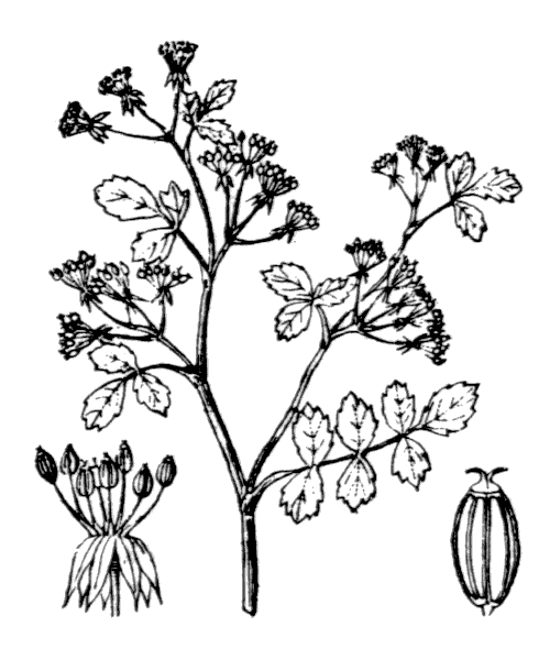 - involucelle régulier, à 5-8 folioles lancéolées, herbacées, réfléchies