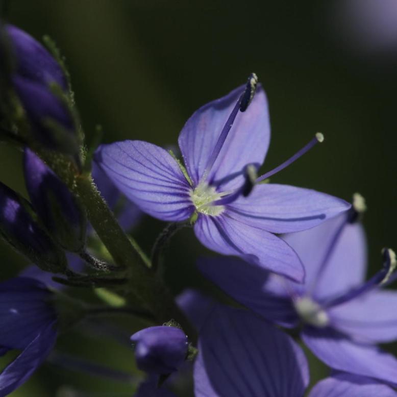 Semblable à V. teucrium, mais feuilles lancéolées à linéaires-lancéolées, 3-7 fois plus longues que larges, bord un peu révoluté, atténuées à la base, à dents grossières et +/- aigües. Capsule glabre.